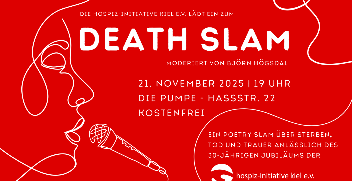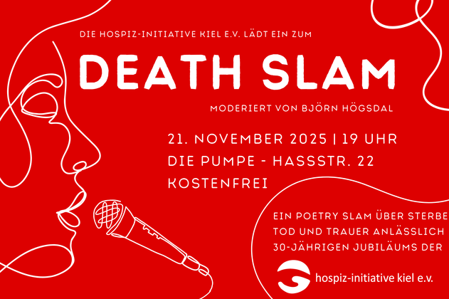 Beim Poetry Slam der hospiz-initiative kiel e.v. zu den Themen Sterben, Tod und Trauer treten die erfahrenen Wortkünstler*innen Björn Katzur, Janne Petersen-Feddersen, Selina Seemann und Jann Wattjes auf der Bühne gegeneinander an. Wer gewinnt, entscheidet traditionell das Publikum! Moderiert wird der Abend von Björn Högsdal.