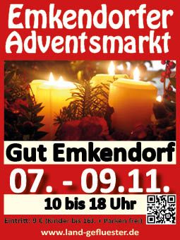 Adventsmarkt auf Gut Emkendorf mit Ausstellern für Kunst, Dekoration, Schmuck, Klamotten, Köstlichkeiten, Pflanzen und vielem mehr.