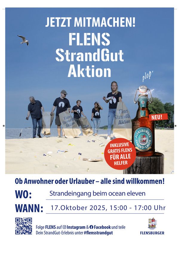 Wir räumen gemeinsam den Strand nach der Saison auf und befreien den Strand von Müll. Ob Anwohner oder Urlauber - alle sind herzlich eingeladen! Danach gibt es für die Helfer Gratis FLENS Getränke und Laugenbrezel.