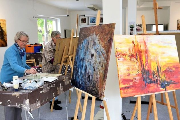 In meinem lichtdurchfluteten Galerieatelier gebe ich wöchentliche Malkurse.