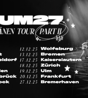 Gerade erst haben RAUM27 die erste Tour zum gleichnamigen Top-10-Album erfolgreich abgeschlossen. 20.000 begeisterte Fans feierten gemeinsam mit der Band euphorische Live-Momente, die geprägt waren von Nähe, Energie und echtem Austausch. Schon Wochen vor Tourstart waren die meisten Termine restlos ausverkauft – kein Wunder also, dass RAUM27 noch in diesem Jahr für eine Fortsetzung zurückkehren.