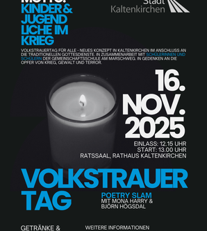 Der Volkstrauertag am 16. November ist ein Tag des stillen Erinnerns – an Krieg, Gewalt, Verlust und Leid. Doch er ist auch ein Tag des Lernens und der Verantwortung für die Gegenwart. In diesem Jahr bekommt die Gedenkveranstaltung in Kaltenkirchen ein neues Gesicht: Erstmals richtet die Stadt neben den traditionellen Gottesdiensten ein eigenes Programm im Rathaus aus. Anschließend werden an den Gedenkstätten Kränze niedergelegt.