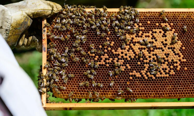Für die praktischen Arbeiten besuchen wir die Honigbienenvölker im Kollhorster Bienengarten.