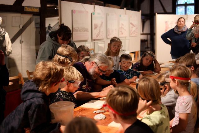 Mit Hammer, Meißel und viel Fingerspitzengefühl dürfen die Kinder sogar ein echtes Fossil vorsichtig aus dem Stein befreien. Dabei lernen sie, wie diese uralten Zeugnisse des Lebens entstanden sind und was sie über vergangene Zeiten verraten.