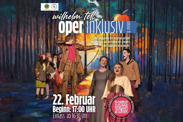 Die Musikschule Neumünster präsentiert eine außergewöhnliche Produktion der Oper „Wilhelm Tell“, basierend auf der eindrucksvollen Kurzfassung von Gioachino Rossini und unter der musikalischen Leitung von Skye Grosskopf. Dieses Projekt lädt besonders Menschen ein, die bisher kaum oder noch nie mit Oper in Kontakt gekommen sind, und öffnet ihnen die Tür zu einer Welt voller Dramatik, Emotion und künstlerischer Tiefe. In dieser Aufführung wird die berühmte Geschichte des Schweizer Freiheitshelden Wilhelm Tell lebendig: sein mutiger Widerstand gegen Unterdrückung, der legendäre Apfelschuss auf den Kopf seines Sohnes und der Kampf eines ganzen Volkes um Selbstbestimmung.