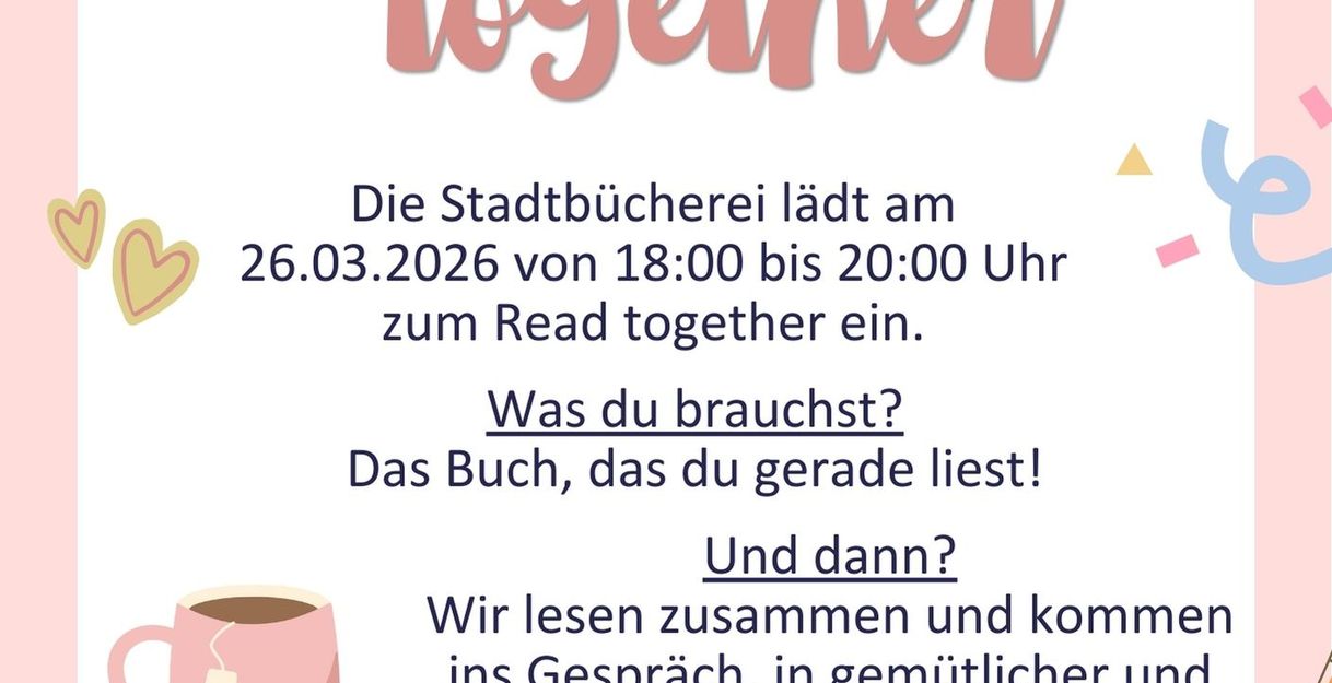 Nach zwei sehr gut besuchten Auftaktveranstaltungen im November und Januar lädt die Stadtbücherei Schleswig nun erneut am 26. März 2026 von 18:00 bis 20:00 Uhr zum gemeinsamen Lesen im Rahmen von „Read Together“ ein. Die bisherigen Treffen übertrafen die Erwartungen, und die Teilnehmenden genossen die entspannte und gemütliche Atmosphäre.