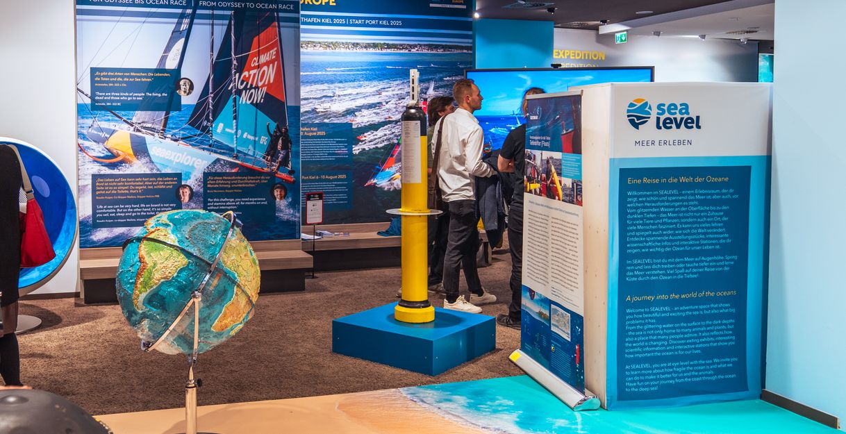 Das SEALEVEL in der Kieler Innenstadt ist ein Erlebnisraum rund um das Thema Meer und Meeresschutz. Ziel ist es, diese Themen möglichst emotional und niedrigschwellig an die Menschen heranzutragen und einen Ort mit Aufenthaltsqualität zu schaffen. Wer noch etwas mehr Tiefgang möchte, ist 2 x im Monat herzlich eingeladen, die faszinierende Reise von der Küste in die Tiefsee gemeinsam mit dem erfahrenen Geologen und Paläontologen Dr. Gerd Hoffmann-Wieck zu erleben.