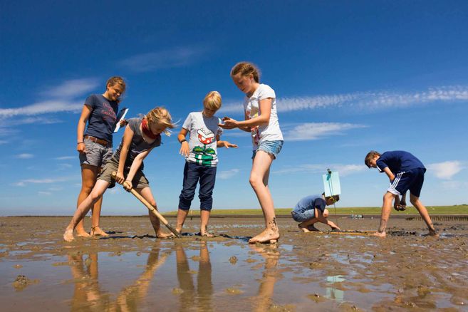 Ist das Watt nur Sand, Wasser und endlose Weite? Ganz sicher nicht! Es ist ein einzigartiger Lebensraum auf den zweiten Blick. Wir nehmen euch mit auf Entdeckertour und begeistern Kinder bei der Spurensuche im Watt. Mit vielen Spielen und kindgerechten Informationen erklären wir das Entstehen von Ebbe und Flut, warum Krebse einen Panzer haben und gehen gemeinsam auf Muschelsuche. Auch Willi, den Wattwurm, werden wir bei dieser ca. einstündigen Veranstaltung vorstellen. Bitte achten Sie auf wetterangepasste Kleidung und ausreichend Sonnenschutz. Von Oktober bis März empfehlen wir Gummistiefel. Sonst gehen Sie gerne barfuß. Und keine Angst, das sandige Watt vor Nordstrand ist sehr kinderfreundlich und man sinkt nur wenig ein.