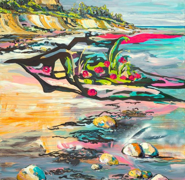 In der Ausstellung "Farbenspiel" begegnen sich zwei Welten: die raue Weite der Ostseeküste und die leuchtende Ferne der Südsee. Wiebke Buch, Meisterschülerin von Ute Wöllmann, zeigt ausgewählte Arbeiten, die in direkter Auseinandersetzung mit Landschaft, Licht und Bewegung entstanden sind – plein air und im Atelier weitergeführt. Mit kraftvollen Farben, expressiven Formen und einer spannungsreichen Mischung aus Malerei, Druckgrafik und Cutouts fängt sie Momentaufnahmen ein, die weit über das Sichtbare hinausgehen. „Farbenspiel" lädt ein zu einer malerischen Reise zwischen Wind, Wellen und tropischer Wärme – wild, poetisch und voller Energie."